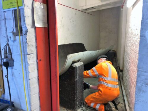 • Due to the location of the tank room, a restricted working area was sectioned off with clear Health & Safety warning signs